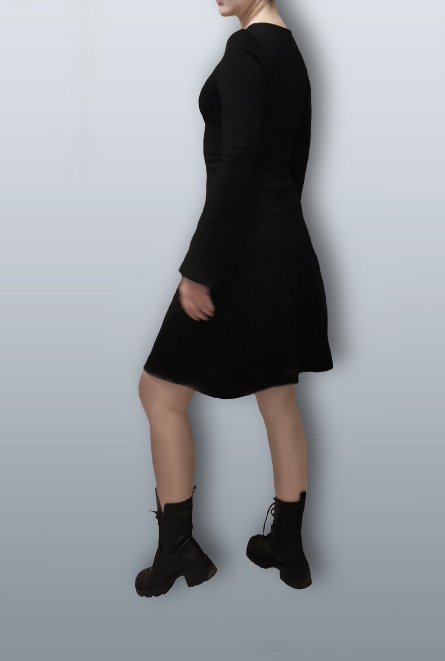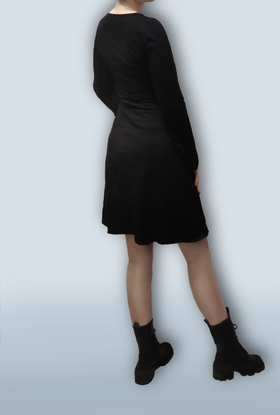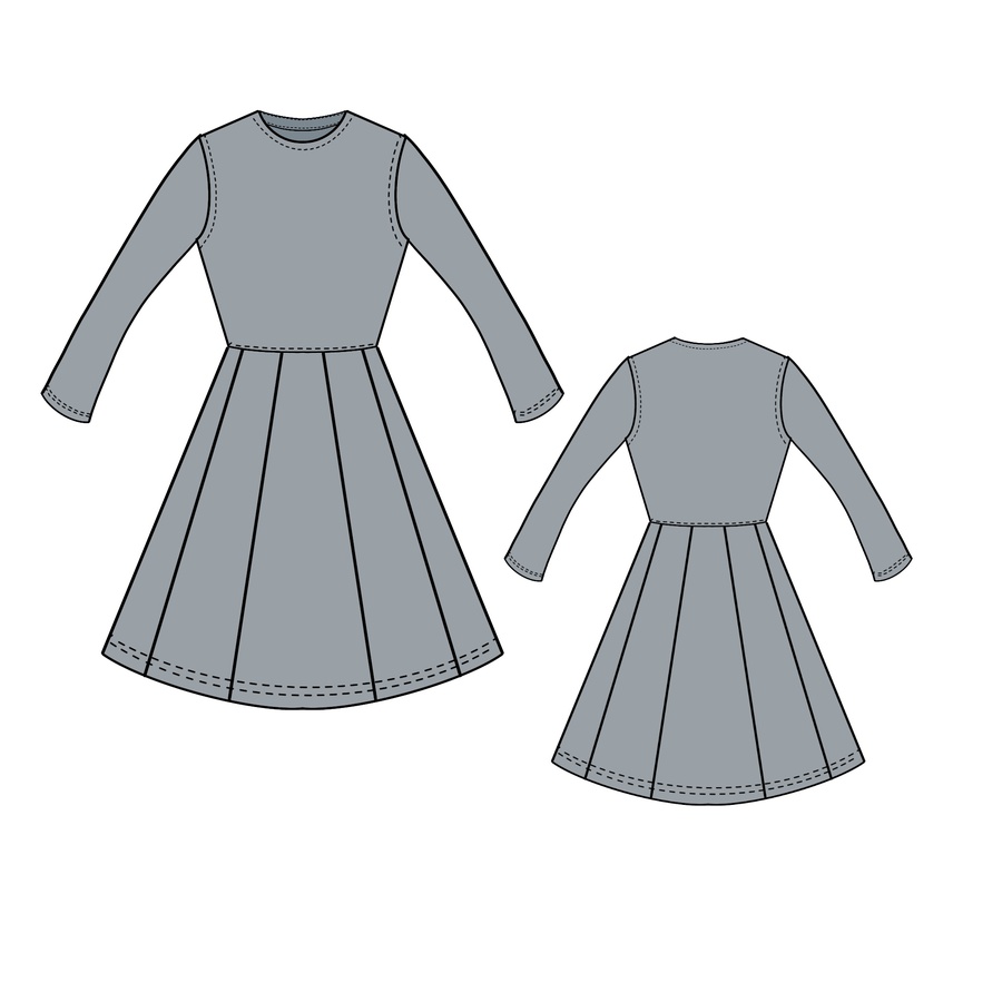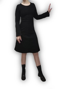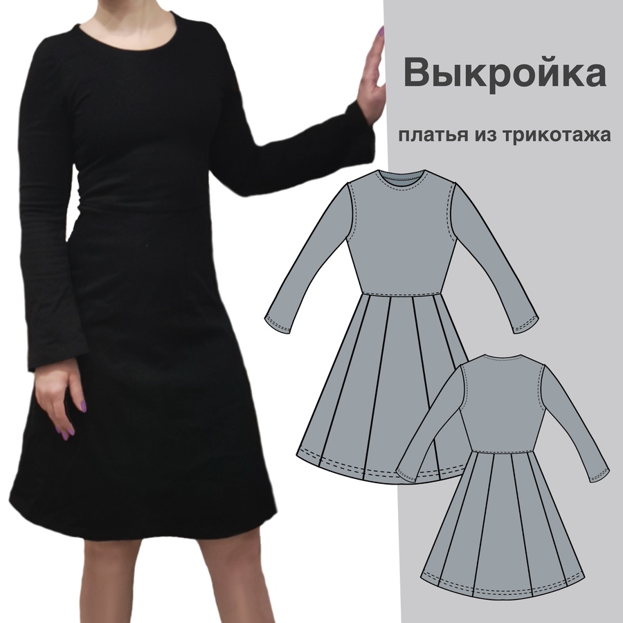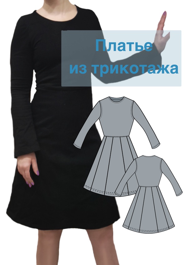 Платье из трикотажа с отрезной талией и юбкой из 8 клиньев. Рукав немного расширен к низу.